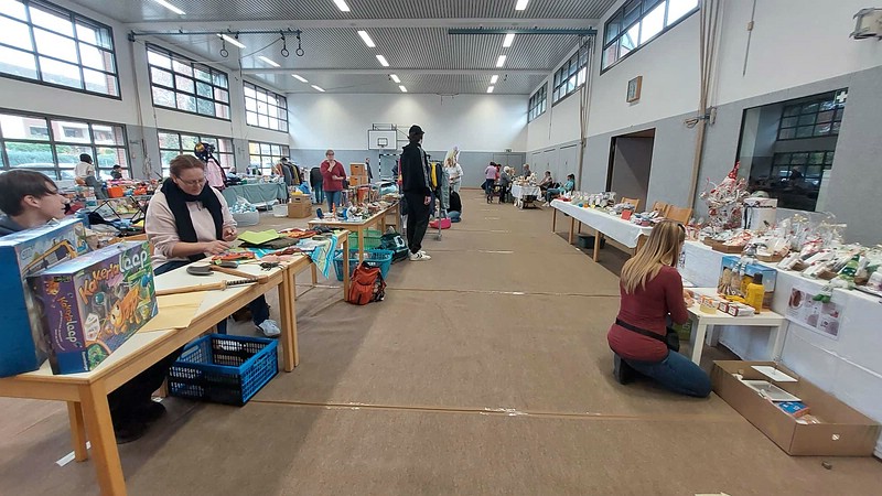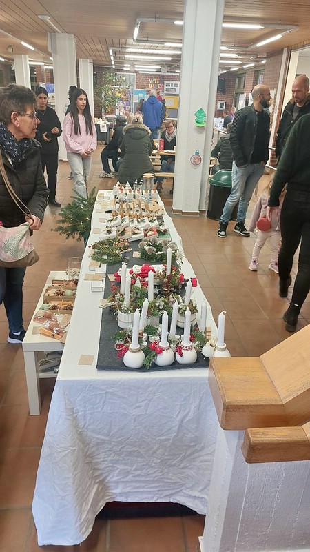 In der festlich geschmückten Eingangshalle und in der Sporthalle bot sich den Gästen ein abwechslungsreiches Bild: An zahlreichen Ständen präsentierten sowohl Schülerinnen und Schüler als auch externe Ausstellerinnen und Aussteller ihre selbst gefertigten Produkte oder Gebrauchtes aus zweiter Hand. Mit viel Kreativität und handwerklichem Geschick waren in den vergangenen Wochen liebevolle Bastelarbeiten, kunstvolle Dekorationen, handgemachte Geschenke und viele weitere schöne Dinge entstanden, die perfekt zur vorweihnachtlichen Stimmung passten.